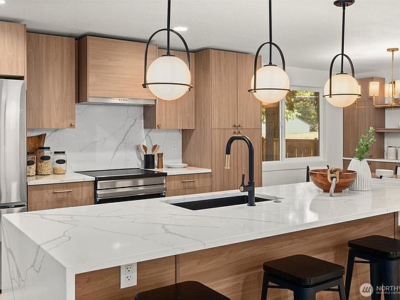 Fully rebuilt and re-imagined by Aced Homes in the heart of Kirkland Highlands! This 5 bed, 2.75 bath home sits on a 9,544 sq ft corner lot and has been completely renovated with a new roof, windows, plumbing, electrical, HVAC, and more. Every surface shines with designer details by AJX Design: custom European-style kitchen with waterfall quartz island and dry bar, tile fireplaces, and high-end LVP flooring throughout. The luxury ensuite bathroom with a dual shower, freestanding tub, and double vanity.. Main-floor office/guest room, upstairs laundry with dog-wash, new deck, fenced yard, and firepit. Minutes to downtown Kirkland, parks, and top-rated schools - this one is truly new from top to bottom.