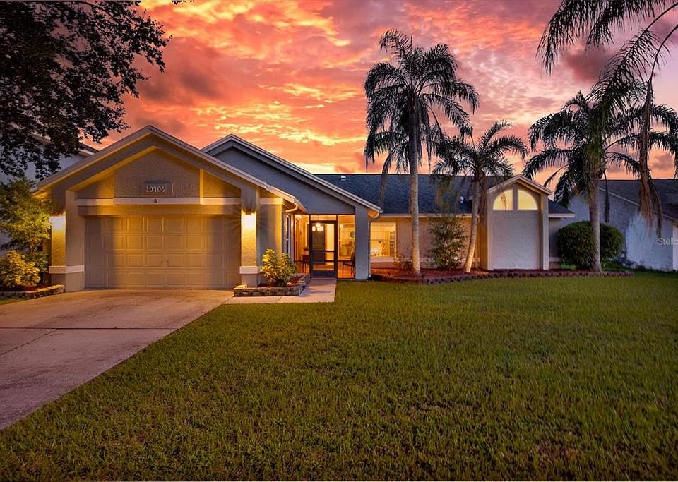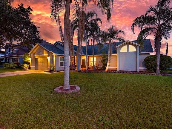 BEAUTIFUL POOL HOME with serene pond views in Boyette Springs and NO HOA! Step outside and enjoy Florida living at its finest with a sparkling pool, spacious pool deck, and a large covered patio perfect for entertaining family and friends. Sliding doors provide flexibility to enclose the area, while a separate screened patio off the guest bedroom adds another relaxing retreat. A cozy front screened entry welcomes you into this 4-bedroom, 2-bath split floor plan. Inside, the kitchen has granite countertops, stainless steel appliances, and three pantries for maximum storage. The remodeled second bathroom is equipped with modern finishes, while the primary suite offers a vaulted ceiling, updated accent wall, two closets, and a granite-topped dual vanity. Crown molding adds an elegant touch throughout the home. Additional features include: Bonus A/C room in garage – perfect for extra storage, crafts, or office space Freshly painted exterior (2023) Roof (2022) HVAC (2019) Water heater (2024) Mature palm trees enhancing curb appeal Can be used as short term or long term rentals with no years of ownership required!! This home blends comfort, style, and peace of mind with its many updates—ready for its new owners to enjoy right away!
