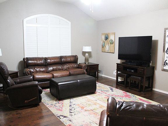 Great floor plan! Corner fireplace, open kitchen area with large dining area. Isolated Master with separate tub and shower, his & her walk-in closets, covered patio, sprinkler system. Real hardwood floors and plantation shutters. Call Property Owner to schedule a showing or if you have questions. Happy to pay real estate commission if the buyer has a contract with an agent.