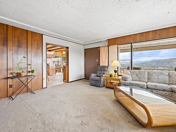 Fantastic single-level home in Blossom Valley area of El Cajon. This unique residence is perched on a substantial 1.76-acre lot. The combination of breathtaking views of hills, downtown San Diego and the distant ocean, a large, usable lot offers a rare chance to create a bespoke outdoor oasis, perfect for living the San Diego indoor-outdoor lifestyle. The attached ADU can be updated and left as such or create a truly spectacular primary retreat. Its all ready for your personal touch.