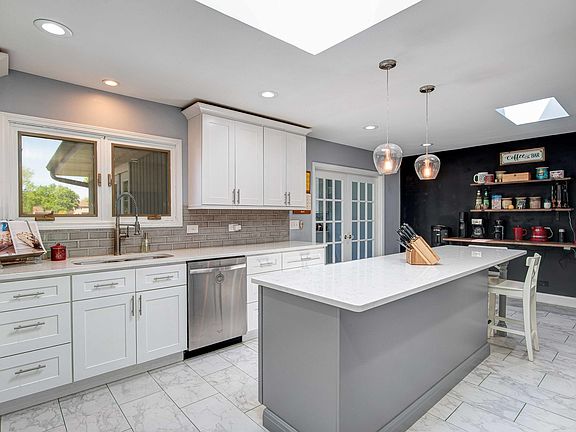 This split-level home sounds like a dream retreat! The description paints a vivid picture of a serene lakeside oasis, perfect for those seeking both relaxation and adventure. The main level's hardwood floors and gourmet kitchen with white cabinetry and quartz countertops, complete with magnetic chalk wall, offer a blend of elegance and functionality. The abundance of natural light from skylights and roll-out windows creates an inviting atmosphere throughout the home. And with the dining room overlooking the deck and lake, every meal becomes a scenic experience. The second level, with its hardwood floors and updated bedrooms, provides comfort and convenience for residents and guests alike. The lower level offers additional space for relaxation and entertainment, complete with a cozy family room with a brick fireplace and a bonus wine storage area. The south wing adds even more versatility to the home, with a sunroom offering panoramic views of the lake and deck, a media room for movie nights, and ample storage space. The home also offers a three-car garage complete with solar panels and a TESLA backup battery. Outside, the lake beckons with its opportunities for fishing, kayaking, ice skating, and hockey, providing year-round enjoyment for outdoor enthusiasts. And the wildlife sightings, from Bald Eagles to Blue Herons, add a touch of natural beauty to the surroundings. Overall, this home seems like the perfect blend of luxury, comfort, and outdoor adventure-a true haven for those seeking tranquility and excitement alike.