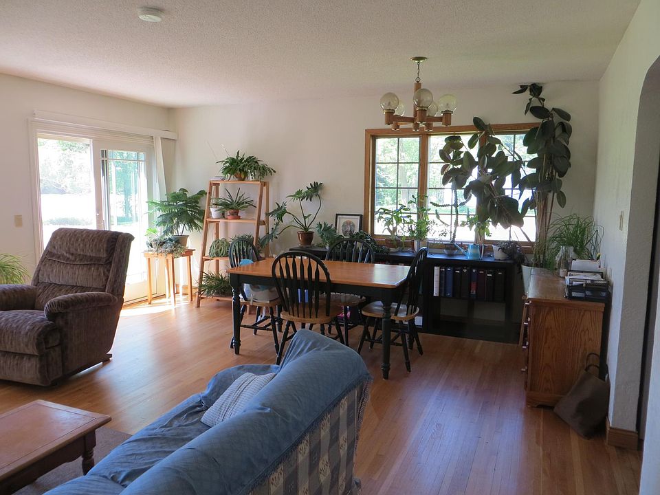 If you are looking for a home with a charming country setting this could be home for you! Relax and enjoy this quaint country home on 5 acres. There are beautiful hardwood floors throughout this 2 bedroom, 1 bath home. The kitchen is equipped with a stove, refrigerator, and dishwasher. There are washer/dryer hookups available. It has a full, unfinished basement. A single stall detached garage with small shop is included with the rent. The two patios invite you to sit outside and enjoy the beautiful outdoors.