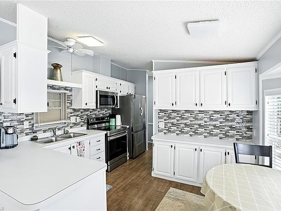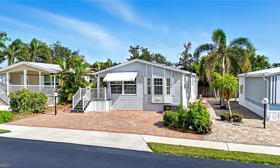 Discover the relaxed elegance of this beautifully renovated vacation home, where bright, colorful interiors create a warm and inviting atmosphere. Thoughtfully updated, this 2-bedroom, 2-bath residence showcases vinyl flooring throughout, a new roof (2023), and a stylishly upgraded kitchen complete with extra storage, stainless steel appliances, and a decorative backsplash. A cozy breakfast nook tucked under the bay window and a separate dining room provide the perfect spaces for everyday meals or entertaining. The spacious living room is filled with natural light, enhanced by high ceilings and vibrant décor. Both bedrooms offer generous closet space, while the outdoor cabana adds even more convenience with a full bathroom, shower, and full-size laundry facilities. Step outside onto the expansive back porch, where lush landscaping and paver walkways create a serene backdrop for relaxing, entertaining, or simply soaking in the Florida sunshine. Crystal Lake RV Resort—recognized as one of the Top 30 RV Resorts in North America—offers a lifestyle unlike any other. From the moment you arrive, you’ll see why. Residents enjoy two heated soft-water pools, three soft-water spas, and a wide variety of activities, including tennis, bocce, pickleball, shuffleboard, boating, billiards, and fitness programs. Beyond the resort, Naples beckons with boutique shopping, fine dining, and miles of pristine Gulf beaches framed by tropical breezes. Not only is this home a wonderful retreat, but it also offers an excellent investment opportunity through Crystal Lake’s rental program with full on-site management. Crystal Lake RV Resort is a vibrant, seasonally focused community, with residency limited to a maximum of ten (10) months per calendar year.