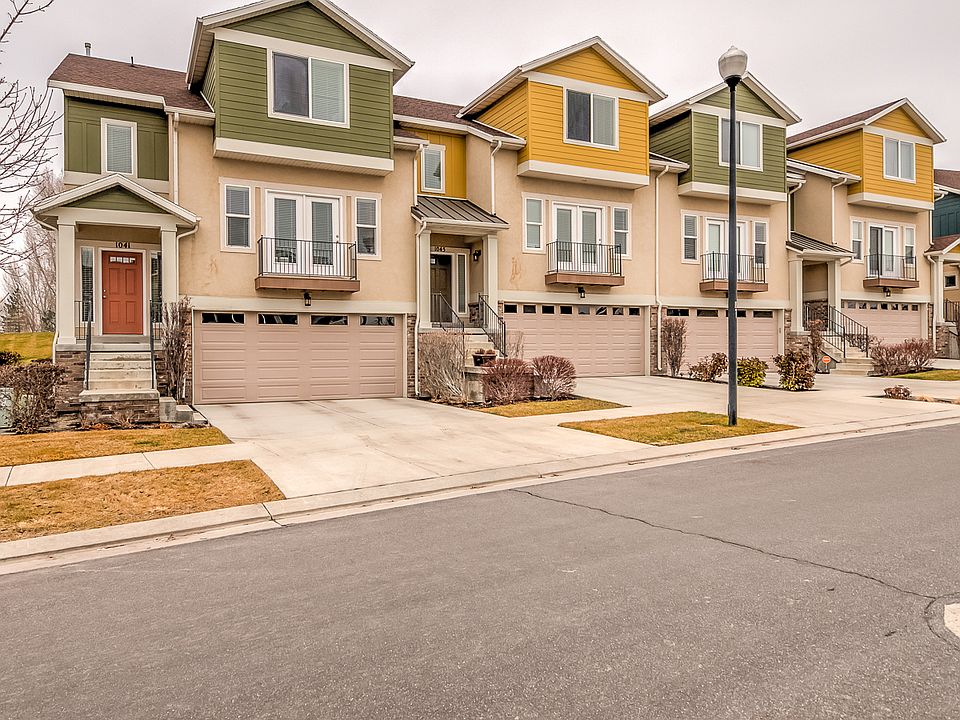 Located on the east bench of Sandy, this spacious town home has large living areas with high ceilings and a four car garage. The views of this unit are particularly stunning with the Wasatch mountains in the front and Pebblebrook golf course in the back. The kitchen has granite countertops and all bathrooms have been upgraded with quartz countertops. Many lighting fixtures have been upgraded and the carpet was recently replaced. This unit also has a driveway on the south side of the structure with full sun exposure, which helps with snow and ice in the winter. There is also easy access the walking trail from the patio.
