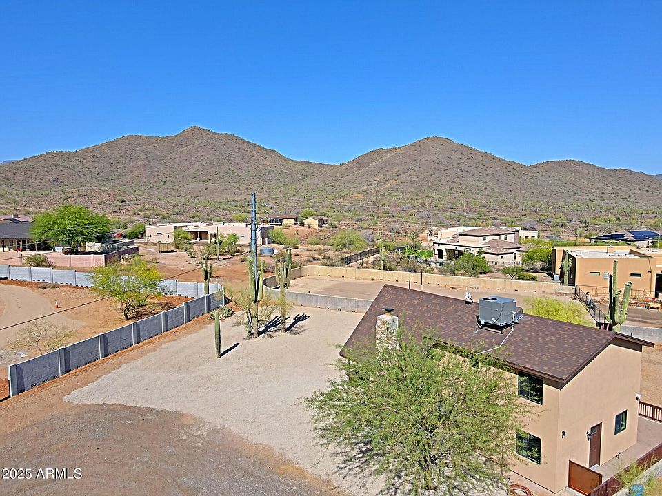 Desirable Desert Hills, custom home on 1.4 acre parcel with horse privileges, no HOA. Privacy, views, close to state land. Detached 1440 sf RV garage (38 ft by 40 ft deep). Move in ready, 4 bedrooms, 2 baths, HVAC replaced in 2024, roof in 2023, water heater January 2024, new interior and exterior paint. Great room with electric fireplace, stainless steel appliances, window blinds, ceiling fans, laminate and tile flooring, carpet in bedrooms. Fridge, washer, dryer conveys. Private balcony of master bedrooms. with stunning mountain views. Renovated baths , new tile in showers. Level usable land, no flood zone, shared well. In area of newer custom homes in $1mil price range. Home warranty. Great Investment opportunity and fast growing Desert Hills close to TSMC, Hurry will not last!
