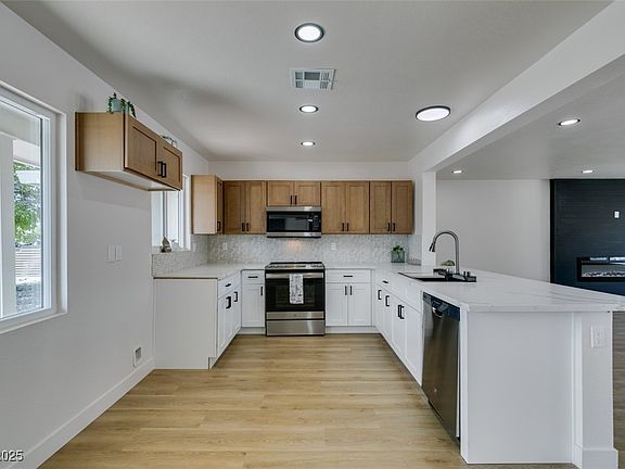 LOCATED IN THE HEART OF LAS VGEAS AND CONVIENTLY LOCATED NEAR THE STRIP & ARTS DISTRICT, YOU WILL FIND THIS FULLY REMODELED HOME WITH ABSOLUTELY NO EXPENSES SPARED! BRAND NEW WINDOWS THROUGHOUT! THIS SINGLE STORY HOME HAS BEEN UPGRADED W/ TOP QUALITY MATERIALS & FIXTURES INCLUDING BRAND NEW LUXURY VINYL PLANK FLOORS THROUGHOUT, FRESH INTERIOR & EXTERIOR TWO-TONE PAINT, CUSTOM SHAKER CABINETRY W/ HIGH END DESIGNER HARDWARE, CUSTOM FABRICATED QUARTZ COUNTERTOPS W/ HIGH END STAINLESS STEEL APPLIANCE PACKAGE, DESIGNER LED FIREPLACE WALL IN FAMILY ROOM, HAND PICKED DESIGNER FIXTURES/FAUCETS/LIGHTING THROUGHOUT, OVERSIZED PRIMARY BEDROOM. COMPLETELY TURN KEY & READY TO MOVE IN!