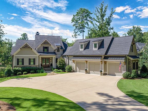 STUNNING REYNOLDS SIGNATURE HOME COMPLETED IN 2021 WITH LAKE ACCESS AND ASSIGNED DOCK ON ANGEL POND. This expanded floorplan offers 5BR/5.5BA with primary suite on main, open living spaces, and exceptional finishes throughout. Soaring 20’ ceilings, wide-plank white oak floors, custom iron railings, and designer tile add luxury details at every turn. Gourmet kitchen features Thermador Professional appliances, custom cabinetry, Moroccan tile backsplash, and large island. Perfect for entertaining with spacious bunk room, finished room over garage with private bath, and lower level with gym and custom wine room. Outdoor living includes screened porch with fireplace, grilling deck, and picturesque pond views. Oversized 3-car garage with custom storage, whole-home sound wiring, zoned HVAC, 84-gal hot water heater with recirculation, and water softener system. Ideally located near Creek Club, new Fenmoor golf course, shopping, dining, and hospital with easy access to Hwy 44 & I-20. Seller makes a Club membership available for Buyer to explore how they can enjoy golf, sporting grounds, tennis, pickleball, fitness, recreational, and culinary amenities befitting a world-class private club.