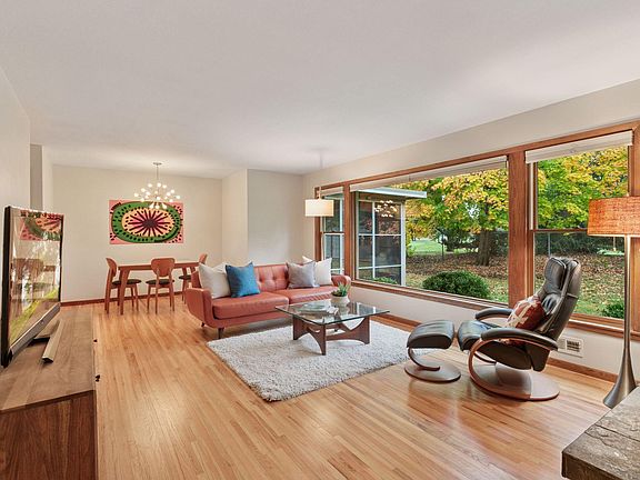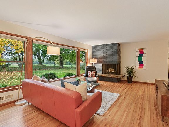 Rarely available pristine mid-century modern backing Golden Valley Country Club! Enjoy perfectly manicured grounds and long views of the 9th fairway. Sparkling interior updates top to bottom including a brand-new kitchen, maximizing storage and counterspace, with honed black quartz countertops, new appliances, and a punchy backsplash. The living and dining rooms have sparkling hardwood floors, a woodburning fireplace, and expansive windows offering golf course views year-round! Down the hall you will find three bedrooms with a mod pink full bath and a ½ bath. The freshly finished lower-level showcases a large family room/rec space, 4th bedroom/guest room, spa-like ¾ bath, and tiled rooms for exercise, crafts, and laundry room. Fabulous outdoor living and entertaining spaces including a 3-season porch with slate floors, a covered screened porch, and a flat and fully fenced lawn perfect for BBQ’s, bonfires and play! Attached 2 car garage is spotless and offers additional space for storage plus a storage shed. Meticulously maintained and cared for with many new windows, new roof, paint throughout, new carpet. Fabulous location walkable/bikeable to downtown Golden Valley shops and restaurants, West End, Luce Line Trail System, multiple parks, and minutes to downtown! It’s a 10!