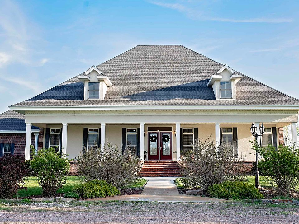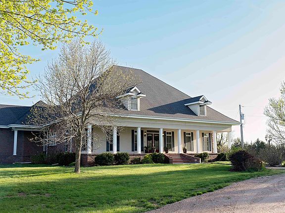 Custom Built Home with 7,326 sf on 10 Acres just 1.5 miles off pavement! Whether you're seeking a peaceful retreat or a place to nurture your passion for animals and agriculture, this acreage offers endless possibilities! The home is adorned with inviting details such as covered front and back porches, perfect for savoring lazy afternoons or greeting guests. Stepping inside, the interior features hardwood floors throughout and is customized with a touch of southern charm. From the grand foyer adorned with intricate moldings to the airy living spaces illuminated by natural light, every corner exudes a sense of warmth and relaxation. The heart of the home, a spacious kitchen, beckons with cherrywood cabinets, handmade hardware and granite countertops, two ovens, six burner cooktop, an island that can sit up to 7 people, and a cozy fireplace. Ideal for both culinary creations and intimate gatherings. As you explore further, discover the primary suite on the main level, a haven of relaxation with its spa-like ensuite bath, complete with a jacuzzi tub and a walk-in shower. Up the winding staircase are 3 spacious bedrooms (one with its very own bathroom and the other two joined by a shared bathroom and office). And if that is not enough, you can stroll down into the basement which offers space for entertainment, relaxation, and recreation alike, including 2 additional bedrooms, a remodeled bathroom and ample storage areas. Additional Property Info: Property features 3 outbuildings, 2 wells, double power panel with generator hook ups, heated floors in garage and basement and 4 water hydrants throughout the property. Flag pole has electricity to it, just needs hooked up. UGS in front to trees and in back to leach field. Seller usually bales area to east of driveway.