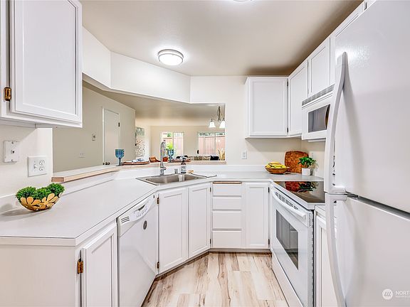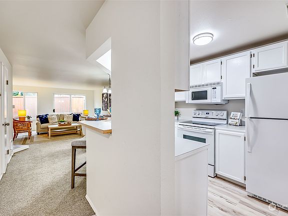 Refreshed and roomy, this remodeled in-town condo is ready for your Bainbridge Island living experience. Close to shopping, schools, library, downtown Winslow and Seattle Ferries. The home includes a west facing patio and small rear yard. Convenient parking and storage with an attached 1 car garage, separate laundry room and open parking spot steps away. The small 11 unit quiet Madison Park complex has mature landscaping with building improvements that are in great shape. The wood fireplace warms up the downstairs great room configuration, and the upstairs contains a primary suite, hall bath and additional bedroom. New improvements include all new flooring complete interior paint, many new plumbing fixtures and lighting.