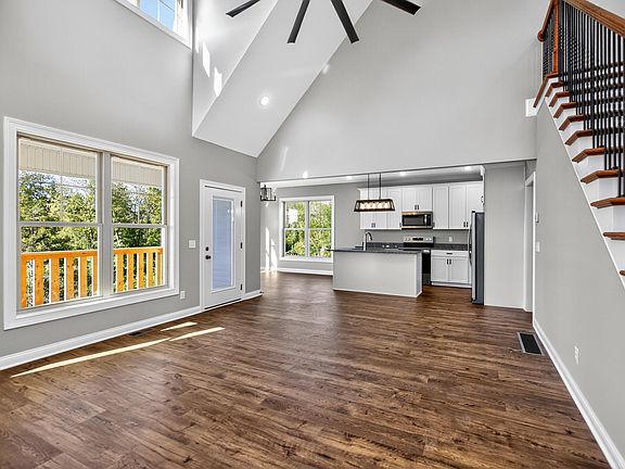 Welcome home to this move-in ready picture-perfect property where charm meets functionality. The inviting covered front porch sets the tone, offering gorgeous curb appeal and a welcoming entry into the light-filled foyer. The beautiful staircase makes a stunning first impression and leads you upstairs to the spacious second level. The kitchen is the heart of the home, featuring a large island perfect for gathering, with easy access to a full laundry room complete with cabinetry and a utility sink. The main-floor primary suite offers a true retreat with a wide double vanity, a generous walk-in closet, and an impressive oversized tiled shower that feels like a spa. Upstairs, you will find two additional bedrooms, a full bath with a double vanity, and a large bonus room that can flex to fit your needs such as an office, playroom, guest suite, or game room. A built-in book and display case in the upstairs hall adds character to the space. Step outside to relax on the covered back deck overlooking a peaceful pond, or head down to the full unfinished walk-out basement that is ready for future expansion or extra storage. With beautiful finishes, thoughtful spaces, and an unbeatable setting, this home checks all the boxes for comfort and style. Schedule your showing today to experience it in person.