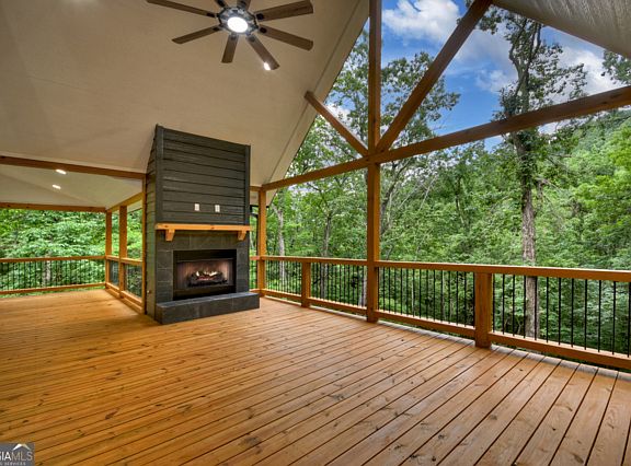 Craftsman-Style Mountain Retreat in Gated Walnut Mountain Community Tucked away in the serene, wooded beauty of the North Georgia mountains, this Craftsman-style home offers the perfect blend of comfort, privacy, and convenience. With 4 bedrooms and 3.5 bathrooms, this well-appointed home is ideal as a full-time residence, mountain getaway, or high-potential investment. The inviting main level features a double-sided fireplace that connects the cozy family room to a spacious eat-in kitchen, complete with stainless steel appliances. The primary suite is conveniently located on the main floor and boasts a luxurious walk-in shower, double vanity, and serene views. Downstair bedrooms offer space for family or guests, finished basement includes a game room or second living area. Step outside to enjoy expansive decks overlooking a private, wooded landscape, with steps leading down to a secluded outdoor fire pit-perfect for cool mountain evenings. Wildlife sightings are common, adding to the peaceful, natural setting. Located in the highly desirable, guard-gated Walnut Mountain community, this property includes access to an impressive list of amenities: four lakes, a waterfall, scenic hiking trails, an Olympic-sized swimming pool, and courts for tennis, pickleball, and basketball. The community also offers a clubhouse, dog park, playground, and 24/7 security. While surrounded by nature, Walnut Mountain is just minutes from the charming towns of Ellijay and Blue Ridge, offering the best of both worlds-tranquil mountain living with easy access to dining, shopping, and entertainment. Whether you're searching for a peaceful retreat or a stylish, functional home with a main-level primary suite, this property delivers on all fronts. Schedule your private showing today!