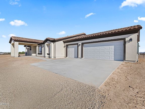 Brand new site built home, situated in a cul-de-sac, near I-10. This 2,318 sq. ft. home is spacious, featuring 4 bedrooms, 3 full bathrooms, a den/office that could be a 5th room, and a 3 car garage. The flooring is tile throughout, and the kitchen has a huge island, quartz countertops and a walk-in pantry. Great room has a dry bar with cabinets to entertain guests. NO HOA, and horses welcome.