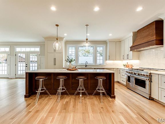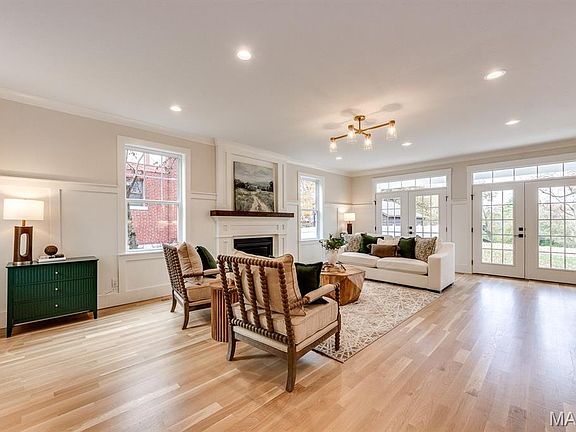Extraordinary opportunity to live in Webster Groves with 3500 square feet of new living space on a private .6 acre lot! Huge front porch takes advantage of this idyllic setting and sets the stage for this impressive modern home. Mahogany front door opens to spacious foyer and great room w/wainscotting, crown molding and custom fireplace. Two sets of French doors open onto the new 20ft patio creating an ideal indoor/outdoor connection. The kitchen is Stunning w/a 10ft walnut island, custom cabinets, 48” range and views to the private backyard. The formal dining room has another set of French doors leading onto the front porch, the perfect spot for winding down after dinner. The “family entrance” is at the rear porch and opens into the mud room/laundry/butler’s pantry. The home office and half bath complete the main floor. The custom staircase leads to a large 2nd floor loft area. The primary bedroom is a dream w/walk-in closet; luxurious bath w/heated floors & separate soaking tub; a coffee bar w/frig and captivating views out the French doors to this incredible setting! There is a 2nd bedroom suite w/private bath and bedrooms #3 & #4 share a 3rd full bath. The basement features a 9ft tall pour, full bath rough-in & egress window to accommodate an additional 1000+/- sq ft. White oak floors throughout the home, 9ft ceilings on first & second floor, zoned heating/cooling, underground power…an opportunity like this will not be found again.