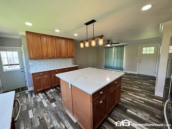 This home was updated recently, the open kitchen and living room on the first floor has a great feel to it. With new flooring, tons of cabinets, a large kitchen island, stainless steel appliances, and a dishwasher. There are 3 bedrooms upstairs. All with good size closets, and ceiling fans. The basement is finished with a bathroom, extra living area, bonus room/office, bar area, and utility closet.