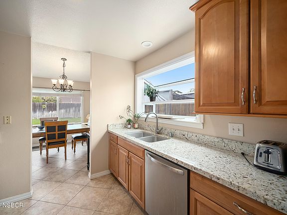 Single-Level Comfort with a Spacious Backyard & Updated Kitchen! With convenient access to US 101, schools, shopping, and dining, this single-level, three-bedroom, two-bathroom home in an established Santa Maria neighborhood offers a functional floor plan, spacious outdoor living, and key updates for easy everyday living. The living room features cathedral ceilings, a cozy fireplace with a brick hearth and wood mantel, and 18' tile flooring. Off the entry, a bonus room with laminate flooring offers flexible use as a home office, study, or fitness space. The renovated kitchen is the heart of the home, showcasing granite slab countertops, updated stainless steel appliances (refrigerator included), abundant cabinet storage, a pantry, and a sunny garden window, flowing into a dining room with a stylish hanging light fixture. The primary suite includes an en-suite bath, while two additional bedrooms are located near the full secondary bathroom. Enjoy the Central Coast's mild climate with versatile outdoor spaces--a backyard with an oak pit grill, expansive lawn, and a concrete patio with built-in bench seating, plus a large front yard with a shady tree for added curb appeal. Additional highlights include a two-car garage with storage cabinets and Milgard vinyl windows. This home is a great opportunity to enjoy comfort, convenience, and classic Central Coast living.