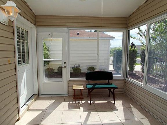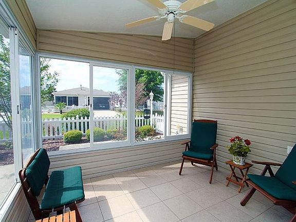 Great Location! Rear Privacy! Sold Turnkey! Located close to Lake Sumter Landing, this lovely Cabot Cove patio villa makes for easy Villages living. It features easy care tile-like laminate floors in the main living area, gas stove, wood cabinets, vaulted ceilings in every room, plantation shutters on the sliding door and main windows, enclosed front porch, and conveniently located indoor laundry. This beautiful villa is ready for you or your renters! One year home warranty included. Bond paid off.