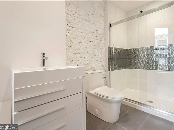 This is a newer construction bi-level 3 bedroom 1.5 bathroom home in West Philadelphia. This unit comes complete with central AC, washer and dryer, and hardwood floors throughout. Your main level has a kitchen and living area, with a white-painted exposed brick wall. The kitchen features sleek grey cabinetry, and stainless steel dishwasher, refrigerator, range/oven, and microwave . The first bedroom offers plenty of closet space and has easy access to the private back patio. The bathroom features a glass sliding door shower. Downstairs there is a secondary living area that connects to the two other bedrooms and a half bath. The home features bright red accent doors throughout which ad a fun pop of color to the space. Please text or email to schedule an appointment for a showing.