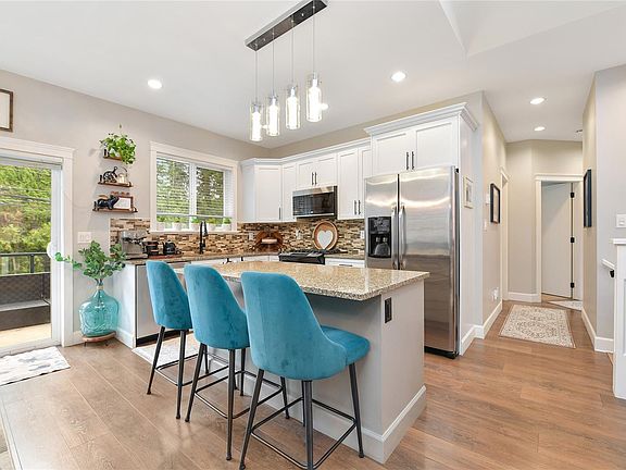 Charming 5 bedroom, 3 bathroom family home with legal suite in an established neighborhood in South Langford. Ideally situated on a no through road, on a generously sized lot of almost 6000 sq ft, with a large, southern exposed, fully fenced rear yard. Level entry foyer leads upstairs to the main living area featuring a great room with vaulted ceilings, sleek kitchen with granite countertops, a gas range and a gas fireplace complete with marble surround. The rear deck overlooks a generous yard and even has a gas BBQ hook up. Luxe primary bedroom with ensuite and a custom window seat/storage area, two additional bedrooms and a spare bathroom round out the upper floor. A fourth bedroom for the main and an office/den can be found on the lower level as well as a nicely appointed 1 bedroom suite. A great value in today’s market. Call now to book your private tour.
