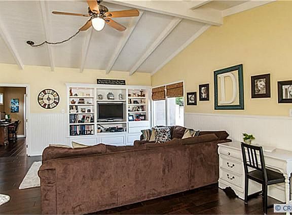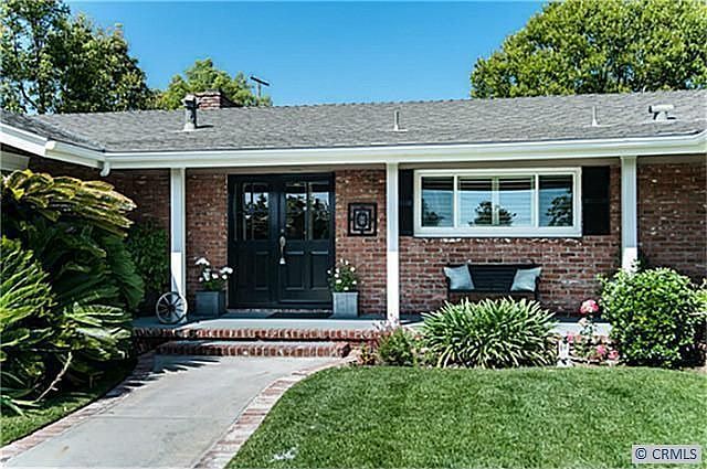 Absolutley Lovely & Charming 1950\'s Ranch with everything today\'s Savvy homebuyer is looking for and more!Stand-out features include an inviting front porch,new wide-plank hardwood floors,open,sunny floor plan excuding Pottery Barn charm throughout!Hard-to-find 5 bedroom, 4 bath SINGLE STORY home on flat .41 Acre lot w/ professionally landscaped gardens,newer pool,spa,built-in bar & bbq,250 sqft permitted storage rm (playhouse/home office?)Fruit trees,garden,RV poss. Two Sep Bedroom Wings each w/Master Bedroom. Beautifully Updated Kitchen w/granite counters,newer appliances.Spacious Dining Room w/views of gorgeous yard. Welcoming Family Room w/beamed ceiling,built-in bookcases/entertainment center, wainscotting,picture windows. Romantic Master Bedroom features French doors,luxury bath, huge walk-in closet. Adjacent office or nursery plus computer niche on this wing.Friendly cul-de-sac perfect for play & within walking distance of award-winning North Tustin schools!