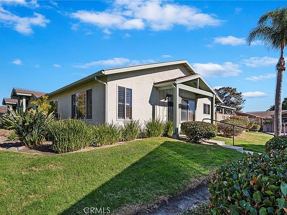 Beautiful 2 bedroom 2 bath single family home in the wonderful Oceana Mission III community in the hills of Oceanside! Only minutes from the beach, shopping, restaurants and more! 1064 square feet. The HOA covers the water, trash, sewer, roof and lots of the exterior maintenance! The house can be financed with FHA, VA or conventional financing. It is NOT a condo! This is a 55+ community. Enter into your single level home with a spacious living room that features carpet flooring, ceiling fan and plantation shutters. The upgraded kitchen has granite countertops, tile backsplash, wood cabinets, tile floors, ceiling fan, freestanding electric range (oven and cooktop), built in microwave, dishwasher and even includes the refrigerator! There’s a formal dining room area off the kitchen that has tile floors and plantation shutters! The master bedroom is big and has carpeted floors, ceiling fan and lots of closet space. The master bath is roomy, has a large vanity area with lots of counter space, solar tube for extra lighting, tile floors and a 5’ walk in shower with safety bars. The 2nd bedroom also has carpeted floors and a ceiling fan. The hall bath features tile floors and a tub/shower combo unit with safety bars. The HUGE covered lanai that you enter from the street is a great place to relax and enjoy the fresh air! It has a privacy wall and a wrought iron front gate. One car enclosed garage with aluminum roll up door and automatic opener. The washer and dryer facilities are in the garage. The garage opens into the lanai area. Dual pane windows throughout the house. New furnace installed in 2019. AND, this house is only steps away from the HOA pool/spa/clubhouse area! The clubhouse is very spacious and has its own exercise room. This is a PERFECT place for you! Please check out all the pictures and the TourFactory Virtual Tour. You won’t be disappointed!