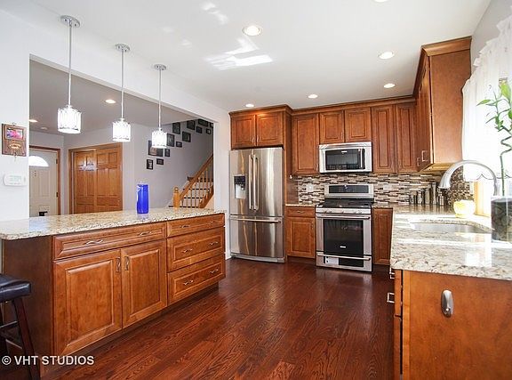 This Beautiful Home Is Ready To Move Right In. A New Roof, Siding and Gutters Were Installed in June Of 2017 All With A Transferable Warranty! The Home Is Well Designed and Has An Open Spacious First Floor Showcasing A Designer Kitchen With Custom Cabinets, Granite Counter Tops, Glass Tile Backsplash, Stainless Steel Appliances Along With Pendant and Recessed Lighting. The Kitchen, Living Room and Dining Room Also Features Solid Hardwood Floors. All Three Bathrooms Have Been Remodeled With Natural Stone On The Walls, Floors and Counter Tops. This Split Level Has A Family Room, Fourth Bedroom and Full Bath On The Lower Level Ideal For Guests Or Extended Family. Other Features Are The Six Panel Wood Doors, Large Backyard, Cul De Sac and Close Location To Shopping, Schools and Restaurants. A Wonderful Place To Call Home!