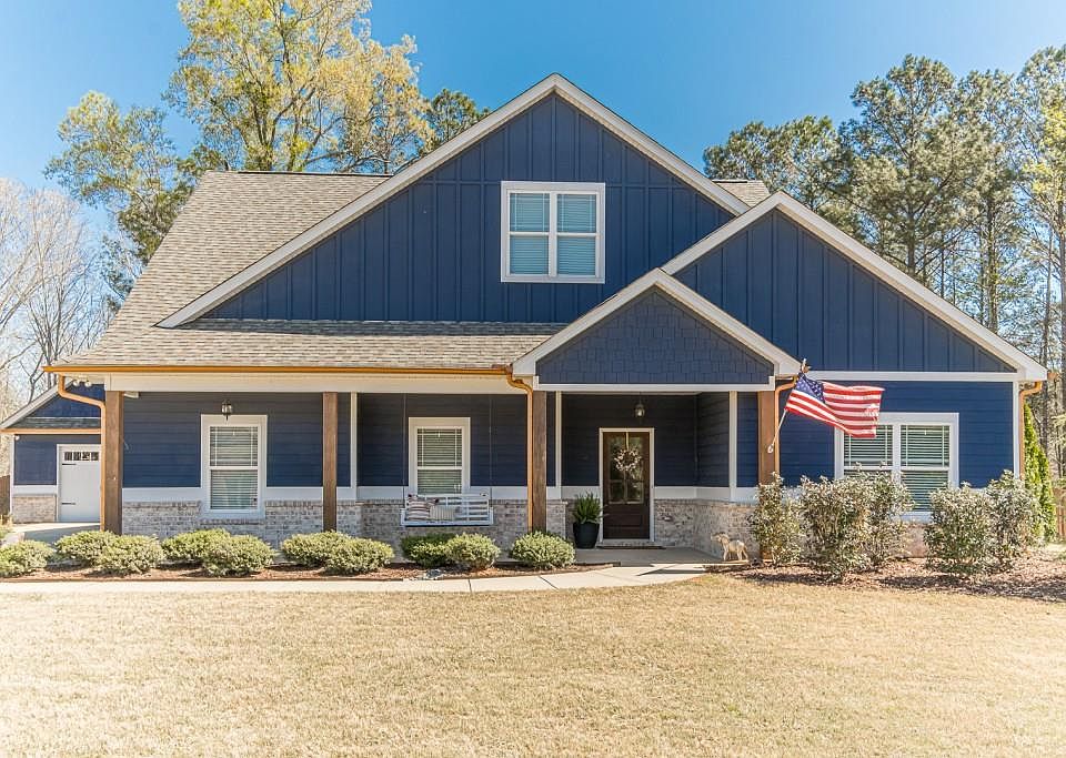 Craftsman style ranch home on private 1.6-acre lot with fenced in backyard. Home features an open concept plan with a large family room that features a beautiful stone fireplace and built in bookcases to showcase all of your favorite things. Enjoy your family gatherings in the large eat-in kitchen with oversized island, granite countertops, and stainless steel appliances. Separate formal dining room is perfect for family dinners. Master suite is located on the main level and features wood beams on the ceiling and private access to the covered patio in back yard. Retreat to the master bath with tile shower, his and her sinks and separate closets. A guest room and full bathroom finish off the first level. Upstairs you will find two additional bedrooms joined by a jack and jill bathroom. Large bonus room is perfect for another bedroom, playroom or office and don't miss the smaller bonus room perfect for storage! Step outside and cozy up next to your outdoor fireplace with TV. One of the few areas in the county to offer fiber internet! All of this in a wonderful sought-after neighborhood only 10 minutes from downtown Madison.