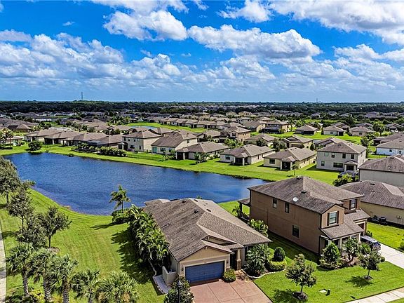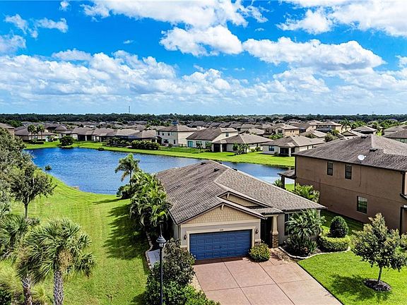 Why wait to build new? This beautiful Oasis model in the highly sought after community of Harrison Ranch, is a must see! This 3 bed/2 bath + bonus room sits on a pond and has a large screened in lanai with extra patio space, which is perfect for grilling and/or entertaining. There are many upgrades in this home, including a stone facing and professional landscaping around the entire yard. New roof in 2022 along with a new HVAC. The upgraded kitchen features stainless steel appliances, tile backsplash, new quartz counters and an oversized island with custom drawers and pendant lights. This home is great for entertaining with a kitchen that opens up to a spacious family room. A custom built bookcase off the kitchen adds a decorative touch as well as additional storage to the home. The master bedroom has a large walk-in closet and a master bathroom with granite counters and dual sinks. The split floor plan puts the other two bedrooms and bathroom on the other end of the house. There is also a bonus room at the front of the house with double doors, making it a perfect home office or den. It could also be converted into a 4th bedroom. A wash bin was added in the spacious laundry room and just outside the laundry room there is perfect space for a mud room as you come in from the garage. The owners upgraded the garage with a 4 foot extension, which provides you with extra space for storage, larger vehicles or a home gym. They also upgraded the garage floor with a durable epoxy finish. The driveway was expanded to accommodate 3 cars and was professionally stained earlier in the year. On the side of the home a privacy wall was added to hide garbage cans so you can get them out of the garage. The home is equipped with a water softener & reverse osmosis system, hurricane shutters and an irrigation system with reclaimed water. The interior was painted in 2018 and the exterior was painted in 2019. Recent school rezoning has Harrison Ranch residents zoned for top ranked schools, including the brand new Parrish Community High School and Barbara Harvey Elementary. Harrison Ranch has an activities director on-site, putting on fun events for families as well as adults. Tampa, St. Pete and Sarasota are all within 45 minutes, making this a perfect central location. Harrison Ranch offers you a beautiful community and a lifestyle you can truly enjoy.