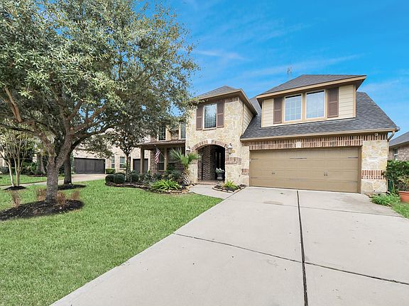 This 2 story Trendmaker built home offers 4 bedrooms (master and full guest down), 3.5 baths, and 3 car garage. Close to boutique shopping and tons of dining options, backs up to greenspace, zoned to Katy ISD (Stanley Elem, Seven Lakes Junior High, Seven Lakes High School). The kitchen features SS appliances, granite countertops, center island with seating for 4, and a walk-in pantry. Primary bedroom features an ensuite bath with French doors, separate sinks with makeup vanity, large corner whirlpool tub, separate shower and walk-in closet. Upstairs find 2 additional bedrooms, a full bathroom, a game room, and media room. Lots of special details including tray ceilings, built in water filtration in kitchen sink, spice racks in pantry, hidden kitchen trash, and granite counter tops throughout. Included: washer, dryer, refrigerator, media room equipment and chairs, pool table, mini fridge in media room.