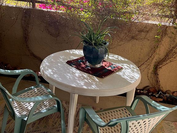 PROBATE SALE - Spacious ground-level condo with 2 bedrooms and 2 bathrooms, featuring a large private patio in the exclusive, gated Pointe Resort Condominiums at Tapatio Cliffs. Enjoy resort-style amenities, including 3 heated pools and spas, tennis and basketball courts, and a relaxing, vacation-like atmosphere. The open-concept kitchen seamlessly connects to the living room, which boasts a cozy fireplace and sliding doors that open to the expansive patio. The primary bedroom offers a private ensuite bathroom with dual sinks and direct access to the patio for added convenience and privacy.