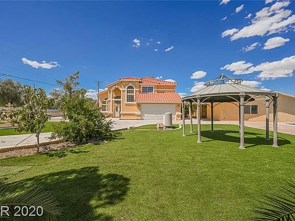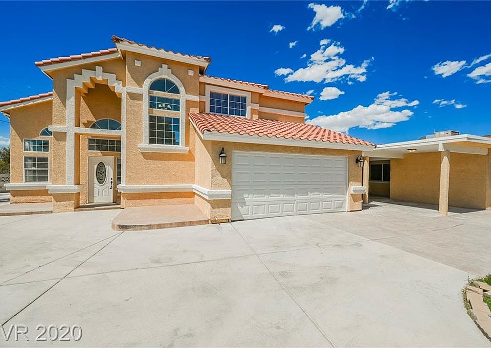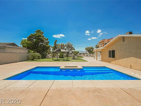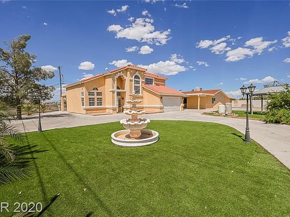 Unique Custom estate nestled on an incredibly rare, near acre lot. Circular driveway leads to spacious front landscaping & beautiful refinished sparkling pool. This unique floor plan offers plenty of spacious living. The home's elegant design features the main master suite upstairs & a secondary master suite downstairs. Upstairs secondary bedrooms share a Jack & Jill bathroom. This estate has recently been renovated with new features such as tile flooring, carpet, & paint. The cabinetry throughout has been beautifully repainted for a more contemporary living experience. The chef's kitchen features a floating island, walk in pantry, pendant lighting, & stainless-steel appliances. This property also includes laundry rooms on each floor. This offers a homebuyer an open canvas to create their own masterpiece and an oversized lot to fit boats, RVs, cars or toys. Great location near the strip, the Allegiant stadium & the practice facility.