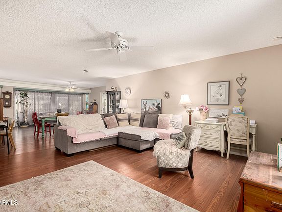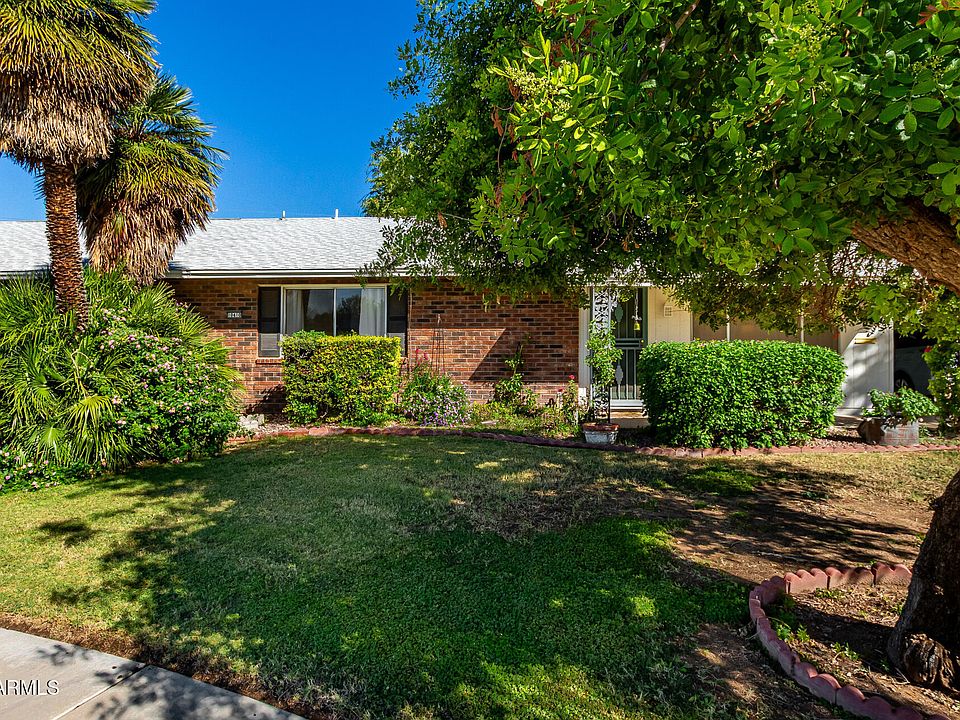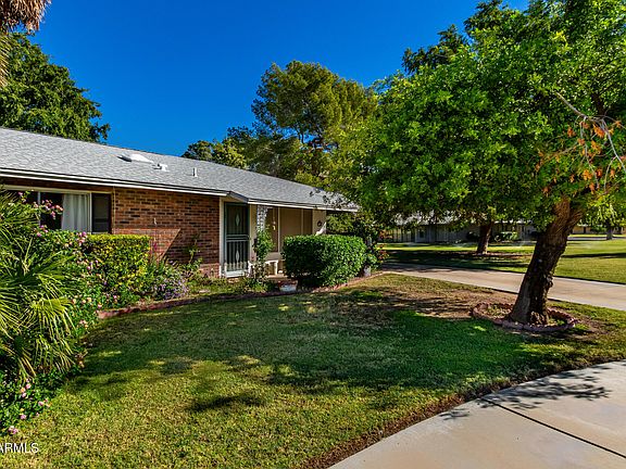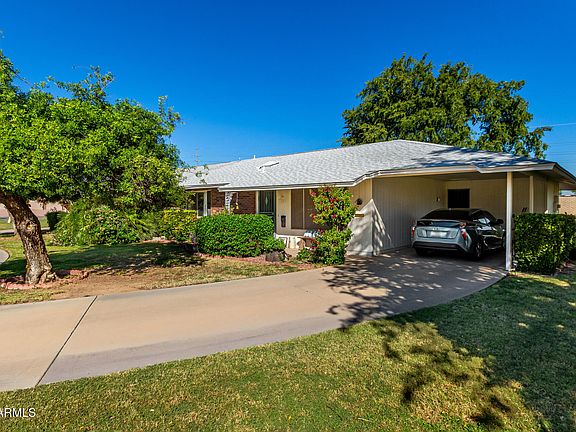 Welcome to this tranquil park-like setting in the 55+ Sun City! Nestled on a cul-de-sac with North and South exposure and mature trees. This home offers 2 beds, 2 baths, and a carport parking. Enter to find a seamlessly flowing living & dining room area. The kitchen boasts retro features filled with so much charm and character. The primary bedroom has a private updated bathroom for added comfort. You'll love the screened-in patio, where you can relax and enjoy the peaceful and serene environment.   Community amenities include golf courses, recreation centers, pools, and a variety of clubs & activities for an active adult lifestyle. Make it yours today!