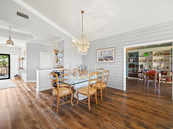 RARE! Spectacular WIDE RIVER VIEWS from this 3 Bed 3 Bath Updated Corner Unit (second floor)! ELEVATOR! Volume Ceilings. Wide Plank Hardwood Floors. East Water Views from almost every room! Witness Magical sunrises over the River. This Condo LIVES like a SINGLE FAMILY HOME! Over 2500 sq ft. Open Floor Plan. Spacious Kitchen. Formal Dining plus Entertaining Bar Area w Wine Fridge. Den/Bed #3 (built in Murphy at Bookcase) w Double Pocket Doors from Living Rm. Spacious Primary Suite, Bath, Dressing Area + Huge Walk In Closet. Over 6 Closets! Laundry Room with Sink and Tons of Cabinetry. (2) Covered Carport Spaces PLUS Golf Cart Spot at the Closest Possible Location. Enjoy the River breezes from your covered and screened balcony. Seller Pays for New Roof + Exterior Paint! More Large Exterior Locker w Electrical at Golf Cart Carport. Vaulted Ceilings w 3 skylights offers natural light. Plantation Shutters. Crown Moulding and Shiplap Trim Details. HVAC 2023. Refridge ~2023. Accordion Hurricane Shutters/One Panel = Complete Coverage. Central Vac. Built in Safe. Low Density Condo Plex w Abundant Green Spaces. Dock Spaces may be available to owners for purchase. Highly desired Turtle Creek Golf memberships may be available for purchase. Superb Location to Pool + Facilities. Popular and Social Turtle Creek EAST! Nearby Restaurants + Shopping. READY for you and yours to ENJOY!