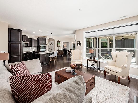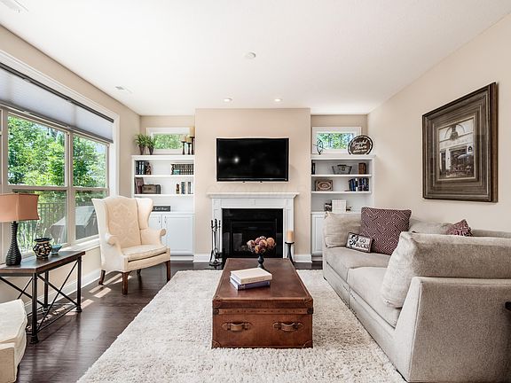 Low maintenance home on a premium lot! Featuring a 1st flr primary BR w/adjoining covered patio, 2nd BR and bath on 1st floor, along w/a dedicated office, 2nd floor bonus suite, 2.5 car garage and hardwood floors. Quartz countertops, upgraded appliances, soft close cabinets w/roll out drawers in deluxe Kit. The Primary Ensuite features a stunning zero-entry shower, double sinks & upgraded heater/fan. You'll love the 2nd flr rec room , 3rd BR & bath along with 2 large storage closets! Amenities include-custom built in shelving in closet, fireplace & custom shades, extra wide doorways & halls. Enjoy entertaining on your lush fenced in patio backing to trees. Homeowner gains access to the Red Barn restaurant, gym and pool across the street.