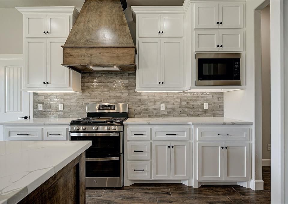 Cathedral-style ceilingsGas rangeWhirlpool tubBuilt-in microwavePrimary suiteDouble vanitiesLuxurious walk-in shower