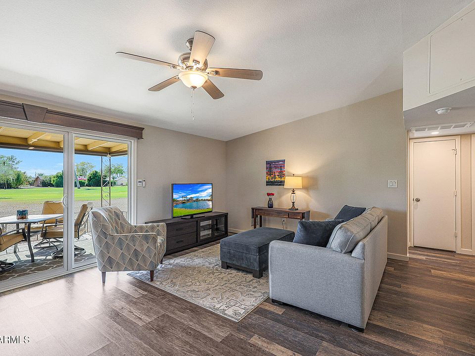 Discover This Remarkable Home In Sun City! This Is A 2-Bedroom, 1.75-Bathroom Home Nestled On The Stunning Sun City North Golf Course. With Beautiful Views, This Home Offers A Perfect Blend Of Relaxation And Recreation. This Home Is Full Of Updates, Boasts Motorized Blinds In The Living Room, Custom Sun Shades On The Back patio, Up-To-Date Open Concept Kitchen, Gorgeous Tile Shower In The Primary Bathroom, And Vinyl Flooring Throughout. This Home Provides Comfort And Style, With A Touch Of Convenience As You Are Located Near A Local Shopping Area. With An Updated Sewer Line, Dual Pane Windows, And A Newer Roof To Ensure Peace Of Mind, This Home Is Move-In Ready. Whether You're A Golf Enthusiast Or Simply Seeking A Tranquil Retreat, This Is A Find You Won't Want To Miss!