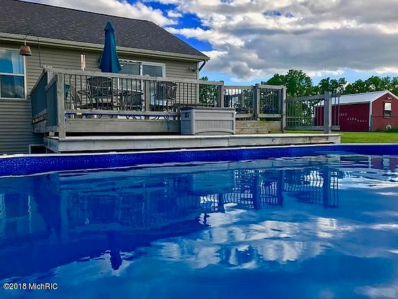 One owner, beautiful, over 3,000 sq ft custom built home on a peaceful 2 acres! You are close to Thornapple Kellogg schools here for all of the conveniences with sports, events and short travel time. Enjoy the remarkable pool with a deep end and lounging decks for lazy afternoons in the fenced in yard. Kitchen sports a HUGE island, tons of cabinets, large dining area and cathedral ceilings throughout the main living area. Geothermal heat and air, sound system throughout home, 2.5 stall garage, 5bed, 2.5 baths, family room, living room, main floor laundry and two offices complete the upper and lower layout. Bring your animals or toys to the on site barn. Schedule your private showing to see all this home has to offer for everyone while it is still here for only a very short time!