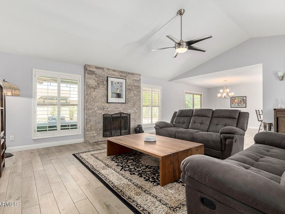 Cozy fireplaceSpacious open floor planPrimary suiteBreakfast barLarge walk-in pantryPlenty of cabinetryBack patio