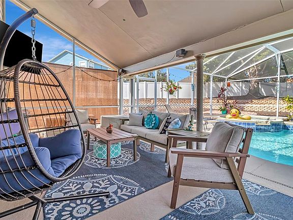 Screened lanaiSpacious laundry roomTropical sceneryPool heaterOversized two-car garageSpa-inspired bathroomBeautiful laminate flooring