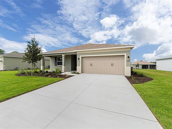 Beautiful New Construction Ginger Model in Longleaf Ridge! Welcome home to this brand-new Ginger model offering over 1,700 sq. ft. of thoughtfully designed living space. This 2-bedroom, 2-bath home includes a flex room and a 2-car garage, combining comfort, function, and modern style in one inviting layout. The open-concept floor plan flows effortlessly into the screened lanai, perfect for enjoying the Florida lifestyle. The gourmet kitchen features premium white staggered cabinets with crown molding, under-cabinet lighting, quartz countertops, a large island, stainless steel appliances, a built-in oven and microwave, cooktop with hood, tile backsplash, and a walk-in pantry. The primary suite offers a peaceful retreat with a luxurious ensuite bath that includes dual quartz vanities, a beautifully tiled walk-in shower with a glass door, and a spacious walk-in closet. The guest bedroom is located at the front of the home with a large closet and easy access to the guest bath, which features a quartz vanity and a tub/shower combination. Enjoy new construction living in the desirable Longleaf Ridge neighborhood of On Top of the World — a premier active adult community known for its resort-style amenities, golf, and vibrant lifestyle.