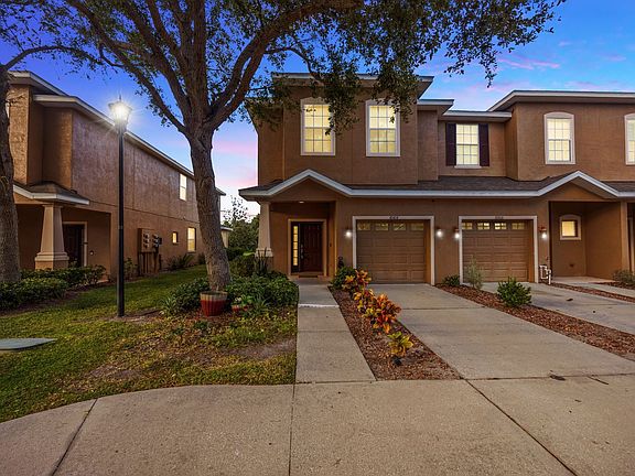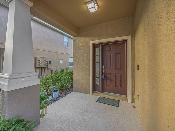 This beautiful townhome is located in the gated Avelar Creek Community. This townhome is a 3 bedroom 2.5 bathroom one car garage end unit. The first floor features a half bath, a spacious kitchen with 42" maple cabinets and Corian counter tops with a large pantry. The living room contains sliding glass doors which open to a screened in lanai with no back neighbor and a view of the pond. A laminate covered staircase leads upstairs to all three bedrooms. The master bedroom features a spacious en suite with dual sinks, a walk-in shower, a garden tub and a walk-in closet. There are two secondary bedrooms and another full bath. There is also a laundry closet on the second floor with a washer / dryer. The Avelar Creek Community contains a community pool and a recreation building for your enjoyment. Book your showing today because this gem will not last long! Some the photos are Virtual Staged