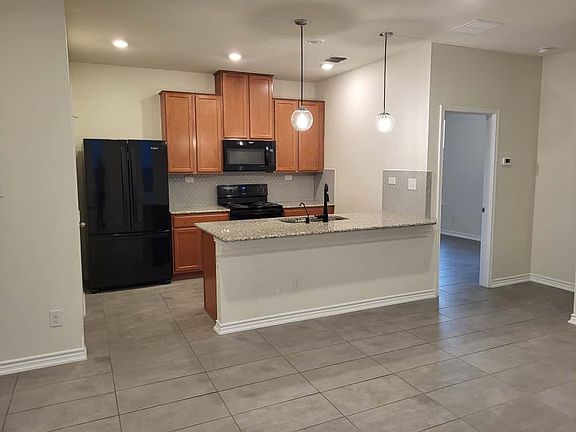 Beautifully designed home with Emser ceramic tile flooring in the kitchen, living room, and baths, granite countertops in kitchen with an extended breakfast bar, all kitchen appliances included, master bedroom is separate from other bedrooms, window coverings included, a covered patio, and a fully sodded yard with irrigation. Minutes to Loop 410, IH-35 and Hwy 281. 15 minutes to Lackland AFB.