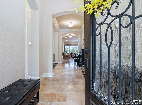 FINAL AND BEST OFFERS DUE MONDAY, APRIL 25TH AT NOON. OPEN HOUSE: SUN., APRIL 24TH 1-5PM. Stunning One-Story David Weekley Home in the Gated Subdivision of Triana. 4 Bedroom, 4 Bathroom Luxury Home with a Gorgeous Outdoor Covered Patio with a Fireplace and Outdoor Kitchen. Relax in the Backyard Oasis and enjoy the Outdoor Deck and Manicured Backyard with Hill Country Views and a Lovely Greenbelt. This Energy Star Certified Home features an Open Floor Plan, High Ceilings, Ceramic Tile, Crown Molding with Gorgeous Finishes. The Gourmet Kitchen includes Stainless Steel Appliances, Granite Countertops, and a Bosch Dishwasher. The Owner's Retreat is Spacious with a Sitting Area and Solar Shades offering Privacy. The Luxury Bath includes a Separate Garden Tub, Walk-In Shower, Separate Vanities and Massive Dual Closets. The Owners spared no expense in Upgrading this Beautiful Home with a Home Sound System in the Living Room and Deck, Solar Panels (2017), New Roof (2019), Motion Detector Flood Lights in the Front and Back, Programable NEST, Reverse Osmosis Water Filtration System and so much more. Check out the Top Rated NISD Schools. Neighborhood Amenities include a Pool, Playground, and Pavilion; Easy Access to 1604/IH10 and Close Proximity to Lackland AFB, La Cantera Mall, USAA. Schedule a showing today! This home is a MUST SEE and will go quickly!
