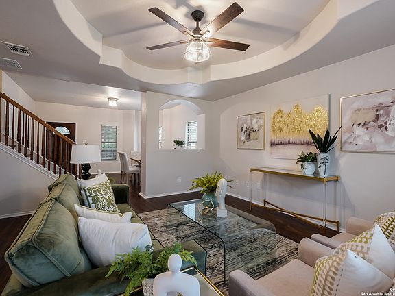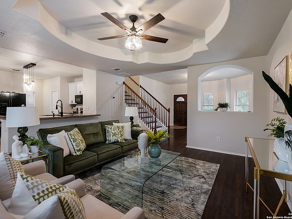 Welcome to your new home! This enchanting 4-bedroom, 2.5-bath residence is a true gem, priced below its appraised value. As you step inside, you'll be greeted by high and vaulted ceilings, creating a sense of space and light that will make you feel right at home. The roof was upgraded in 2017, and the AC unit in 2018, ensuring both comfort and peace of mind. Experience the perfect harmony of indoor and outdoor living with a delightful covered patio, perfect for entertaining guests or simply unwinding after a long day. The kitchen is a chef's dream, equipped with brand new appliances, and yes, the fridge is included with the purchase - a delightful bonus for your convenience. The exterior of this home is a visual delight, featuring an inviting porch and a tasteful combination of stone and brick, making a charming first impression. Bid farewell to carpet woes, as the entire house is carpet-free, providing easy maintenance and a modern aesthetic. Convenience is at your doorstep, with quick access less than 1 mile to 1604. Enjoy a short 8-minute drive to La Cantera and The Rim, offering unparalleled shopping and dining experiences. Alamo Ranch is just minutes away, and the Medical Center is less than 20 minutes from your doorstep. Plus, for our furry friends, a lovely dog park awaits in the neighborhood. Embrace the sense of community with neighborhood book donations at the mailbox, fostering a love for reading among residents. This home is not just a dwelling; it's an invitation to a lifestyle of comfort, convenience, and charm. Don't miss the opportunity to make it yours! **New Territories public swimming pool and tennis courts 7 min away!**