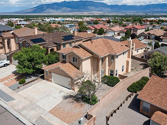 A must-see two-story home in Paradise East with 2,286 sq. ft., 3 bedrooms plus loft, and 3 baths. Packed with upgrades--2025 roof, newer HVAC with refrigerated air, freshly painted interior throughout, new laminate flooring, plush carpet/padding, landscaping, outlet covers, and a brand-new balcony roof. The bright open layout features soaring ceilings, a spacious living room with fireplace, formal dining, and a flexible sitting room. The kitchen offers ample counter space, breakfast nook, and backyard views. Upstairs, the primary suite impresses with a private balcony showcasing Sandia views, walk-in closet, and spa-like bath with soaking tub and separate shower. Covered patio, and oversized 2-car garage add convenience