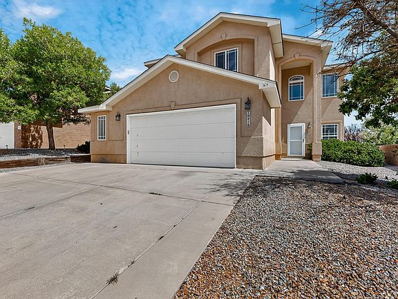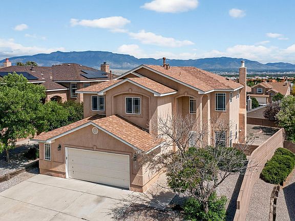 Must-see two-story home in Paradise East with 2,286 sq. ft., 3 bedrooms plus loft, and 3 baths. Packed with upgrades--2025 roof, newer HVAC with refrigerated air, freshly painted interior throughout, new laminate flooring, plush carpet/padding, landscaping, outlet covers, and a brand-new balcony roof. The bright open layout features soaring ceilings, a spacious living room with fireplace, formal dining, and a flexible sitting room. The kitchen offers ample counter space, breakfast nook, and backyard views. Upstairs, the primary suite impresses with a private balcony showcasing Sandia views, walk-in closet, and spa-like bath with soaking tub and separate shower. Covered patio, and oversized 2-car garage add convenience. Close to schools, parks, and shopping--this home checks every box!!!