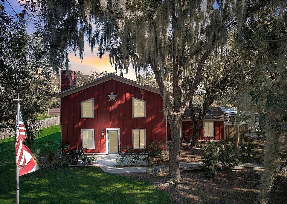 Welcome to your County Cutie with just enough gorgeous Oak trees in the front yard to provide shade and give it that Old Florida Charm! This property offers the perfect blend of rustic allure and modern convenience on just over 1 acre of agricultural freedom. Embrace the open expanse of land where you can bring all your toys – RVs, boats, off-road vehicles – and your beloved animals, be they goats, chickens, horses, or pigs, as there's no HOA restricting your country living dreams. Step into the living room, where 2-story high ceilings adorned with rustic wood beams create a warm and inviting atmosphere. The walls are hand-painted with pieces of exposed brick, adding a touch of timeless character. This is not just a house; it's a home that tells a story.The property boasts two Florida rooms, one on the ground floor and another off the master bedroom, offering serene spaces to relax and unwind. Although not included in the square footage, these additions are lovely features that enhance the overall charm of the home. Ascend to the second floor, where a wood deck off the sunroom attached to the primary bedroom provides a stunning view of the backyard. Sip your morning coffee or enjoy a glass of wine in the evenings while overlooking your expansive property and keeping an eye on your toys and animals. The house comes with two AC units, one just 2 years old and the other 6 years old, ensuring optimal comfort throughout the seasons. The entire property was thoughtfully remodeled from top to bottom by the current owner, including the replacement of half the windows. Laminate wood flooring graces several rooms, while solid wood accents the stairs, adding a touch of elegance to the interior. For the hobbyist or DIY enthusiast, a 12x32 shed workshop and a 12x20 storage shed provide ample space for projects and storage needs. The garage, originally a 3-car space now 2 car and the third has been converted into a versatile area – currently used for storage and a dog kennel room. Imagine the possibilities: an in-law suite, a home office with exterior access, another workshop – the choice is yours.Don't miss out on the chance to own this slice of paradise in Lithia, Florida. Embrace the freedom of country living without sacrificing modern comforts. Make this charming property your home sweet home!