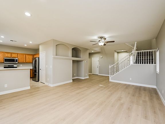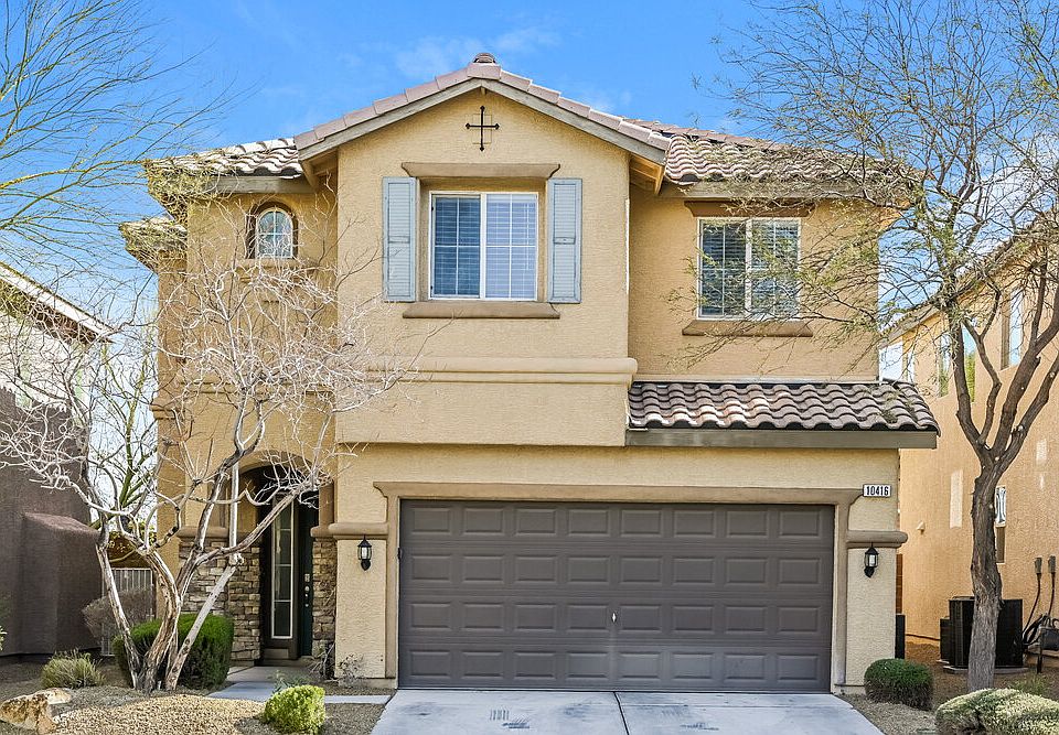 This stunning mountain-view rental home located on Raining Sky Street has three bedrooms and three bathrooms. The two-story house provides 2,160 square feet of living space and natural light. The paved driveway leads to the attached two-car garage. Enter the foyer into the spacious open concept living area with recessed lighting and built-in display shelves. The sizable kitchen includes new oak cabinets and stainless steel appliances. Sliding glass doors open to the covered patio and fully enclosed yard with gorgeous landscaping. Follow the beautiful staircase upstairs to the large, open loft area and bedrooms. Both upstairs bathrooms contain dual sinks and privacy doors to showers. Schedule a tour of this fantastic rental home today!