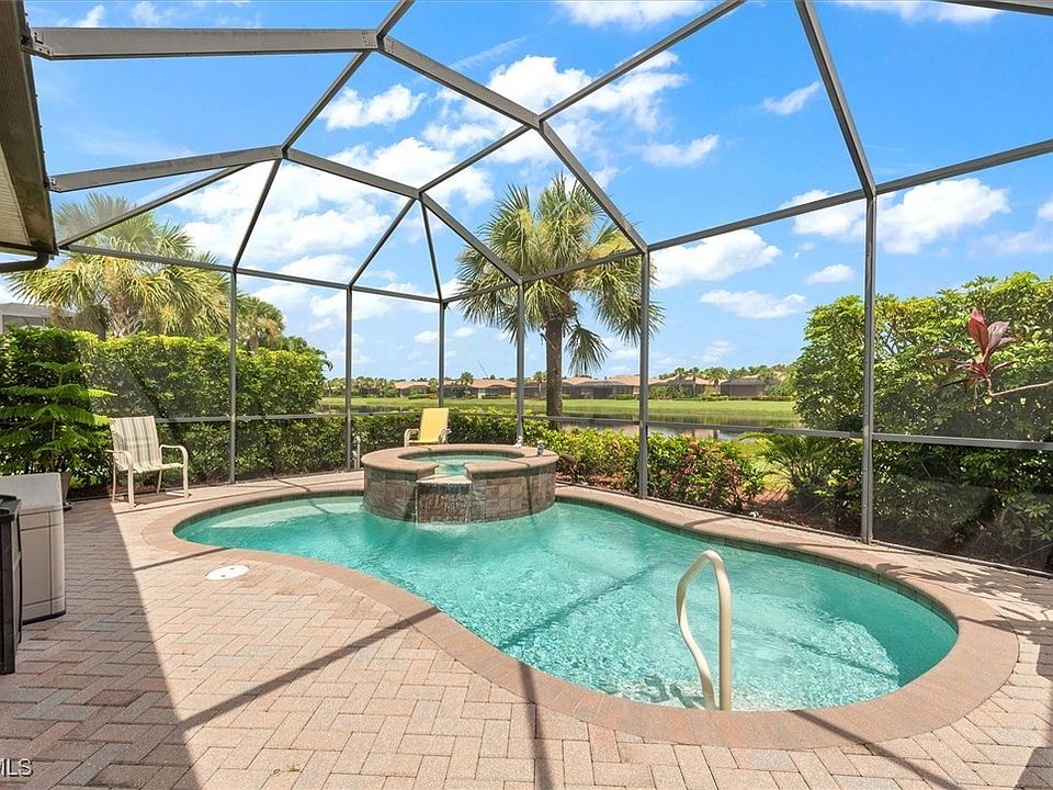 One of the larger 3BR single family floor plans (Carrera model) located in the Maderita Community of Pelican Preserve. Large screened lanai overlooking the LAKE with POOL and SPA. NEW ROOF 2023! Home features a split floor plan with lots of custom upgrades. Plenty of cabinet and countertop space in kitchen featuring white wood shaker cabinets, stainless appliances, granite, huge island and pantry closet. Laundry room includes a sink. The primary bedroom, great room and screened lanai all have waterfront views - Enjoy your morning coffee or evening beverages while relaxing and watching wildlife. All appliances and the water heater have been replaces withing the past 3 years. AC is original. Pelican Preserve is the ultimate in 55+ living in SW Florida offering 3 pools-one is an indoor lap pool, 12 courts of pickleball. 8 tennis courts, softball field, 2 dog parks, walking trails throughout the preserve, amphitheater with live concerts, woodworking shop, arts and ceramics studios, sewing center, spa services offered, 2 great restaurants one of which is an outdoor bar/restaurant adjacent to pool, meeting rooms, game rooms numerous social activities during the week and more. The Club at pelican Preserve offers 27 holes of golf and is OPTIONAL with private membership.