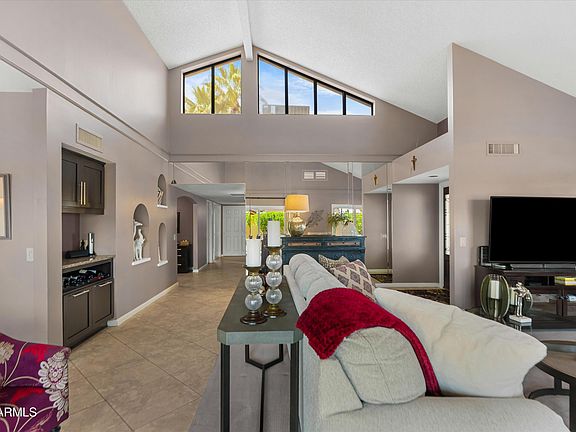 This is the one you have been waiting for! Completely updated! Absolutely pristine home with 2 large bedrooms, 2 1/2 bathrooms (guest bdrm 2nd junior ensuite). As you enter the front door you will be mesmerized by the soaring vaulted ceiling in the huge great room with built in bar,cozy fireplace, sliders to the backyard & patio. Chef's kitchen features Quartz counters,stainless appl, cherry cabinets-tons of drawers/cabinets. Bar seating and dining nook. Flex space for home office or dining. Primary bdrm is oversized with vaulted ceiling,sitting area updated bathroom too. Private Southern facing backyard with full length covered patio,new water fountain, multiple seating areas, fully fenced, citrus trees. Come enjoy all the amenities incl pools, spa, pickleball, golf, tennis & more